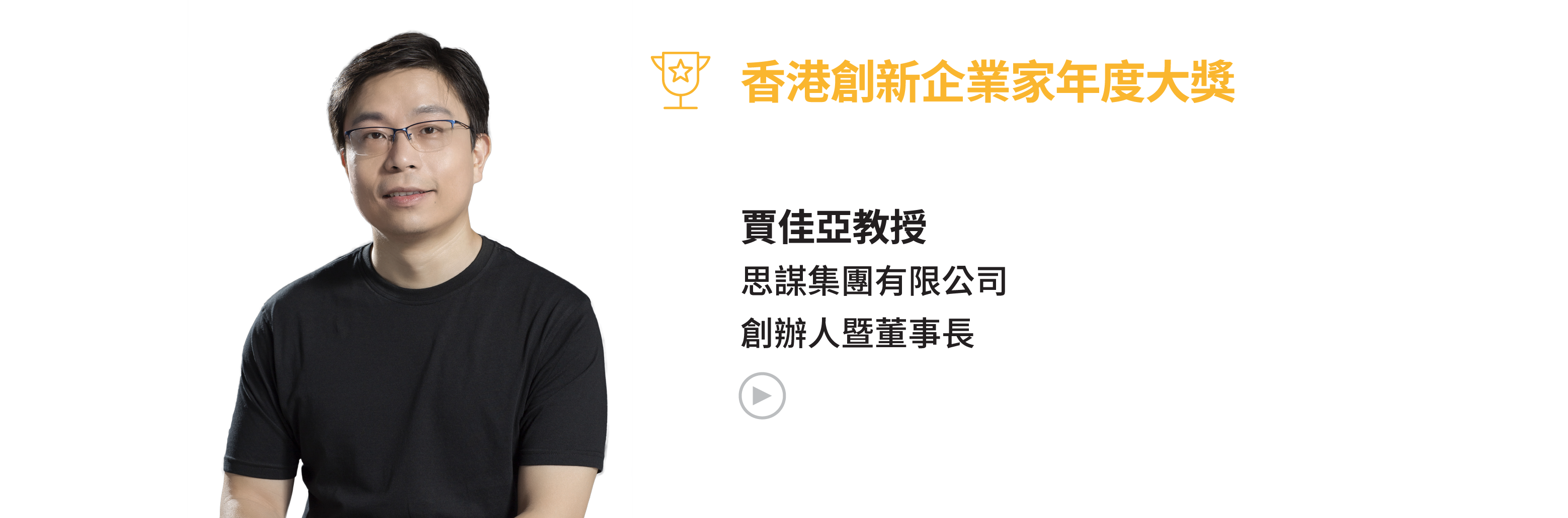 賈教授敏銳地捕捉到全球工業4.0的變革機遇,並在2019年創立思謀集團有限公司 (SmartMore),專注於以科創技術引領工業走向高端先進製造, 透過製造產業優化演算法、智能機器視覺等前沿技術, 持續打造更具拓展性和普惠價值的智能工業和數智創新平台, 推動數字化轉型和智能化升級,並僅用18個月擠身獨角獸行列。 展望未來,賈教授將繼續帶領思謀為香港的科創產業貢獻最大的力量。